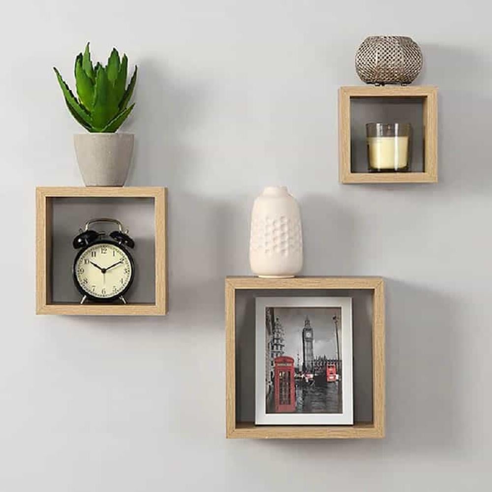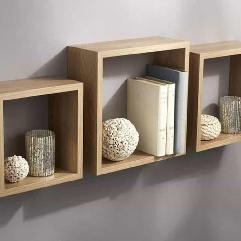 · ارفف خشب ديكور مربعات مثالية لعرض التحف بأسلوب عصري.