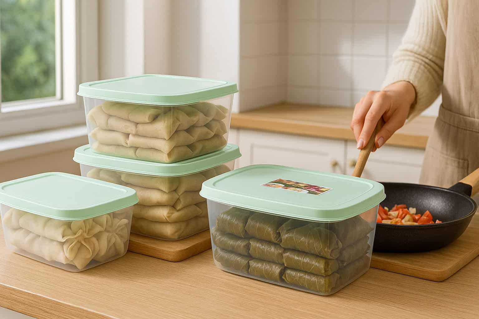- حافظات طعام بلاستيك مثالية لتخزين العجين المجمد مثل البف باستري، السمبوسة، سبرنج رول وغيرها من المعجنات.