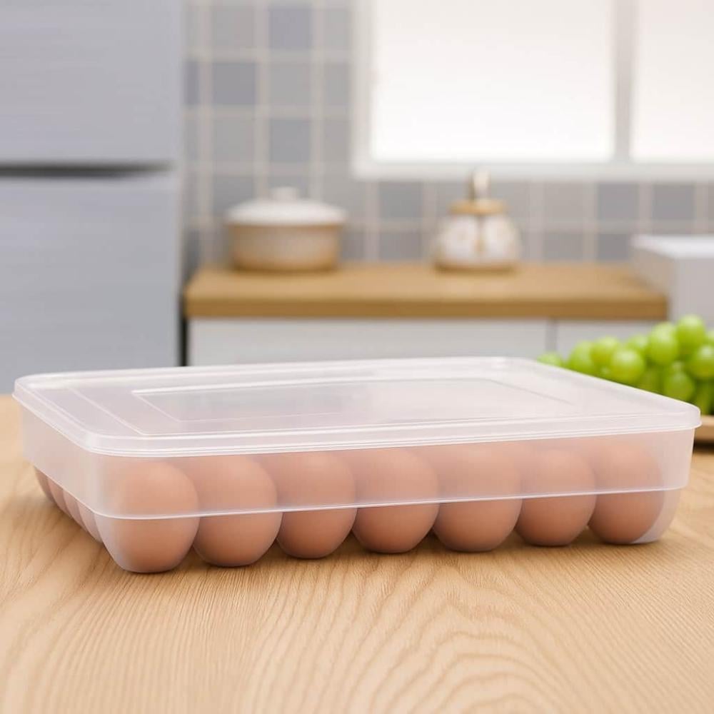 بسعة 24 خانة مع غطاء قوي ومُحكم لحفظ البيض من الكسر ، هذا المنتج يُعد إضافة أساسية لأي مطبخ حيث يجمع بين الوظائف العملية والتصميم الذكي لتوفير أماكن منظمة وآمنة لتخزين البيض داخل الثلاجة مما يساعد في الحفاظ عليها من الكسر والضرر .