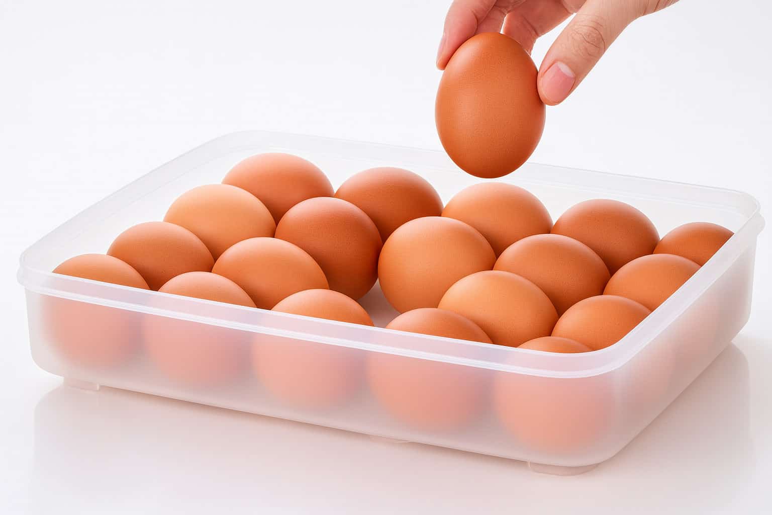 - وضع البيض داخل الحافظة بعناية