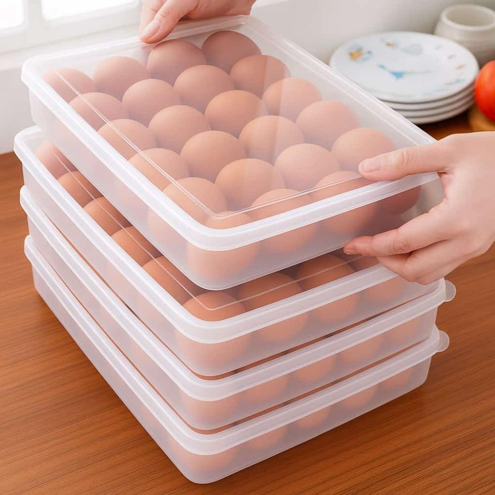 - حافظة تنظيم البيض بلاستيك تستخدم ببساطة لتخزين البيض بشكل آمن ومنظم داخل الثلاجة.