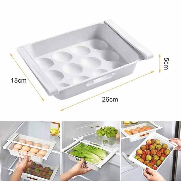 | بإختصار | درج تخزين الثلاجة الاضافي الذي يتم تعليقه على رف الثلاجة يقدم العديد من الاستخدامات العملية لتحسين تنظيم مساحة الثلاجة وتحسين سهولة الوصول إلى الأطعمة.