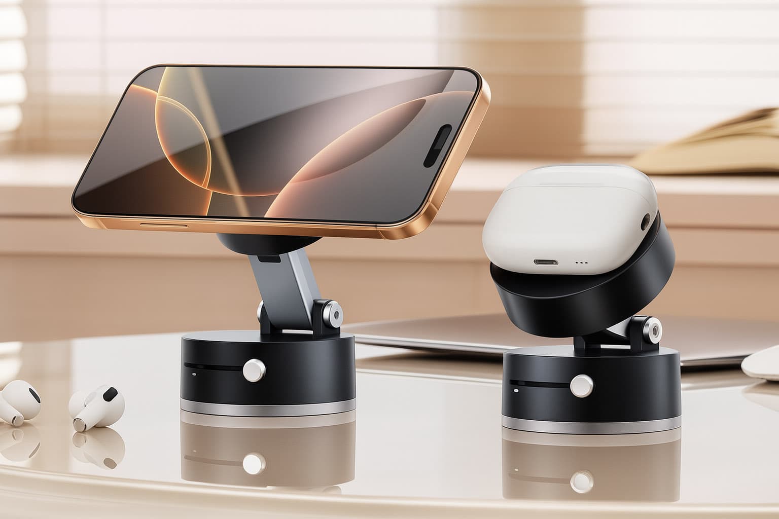 - ثبات قوي بواسطة تقنية الشفط على سطح المكتب أو السيارة