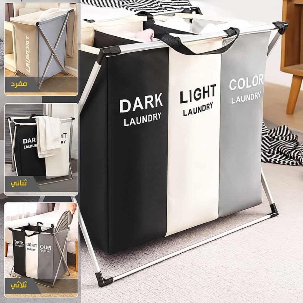 سلات غسيل الملابس المقسمة بتصاميمها المبتكرة، سلة غسيل مقسمة تأتي بثلاثة أنواع مختلفة لتناسب احتياجاتك المتنوعة، تعتبر هذه السلة العملية والمتعددة الاستخدامات حلاً مثاليًا لتنظيم عملية غسيل الملابس في المنزل وتوفير الوقت والجهد، تتميز بأنها قابلة للطي مما يعني توفير مساحة التخزين عند عدم الاستخدام، تساعد السلة المقسمة على تنظيم غسيل الملابس سواءً ملونه أو بيضاء، حيث يمكنك فصل الملابس حسب نوعها أو لونها أو حسب احتياجاتك الشخصية.