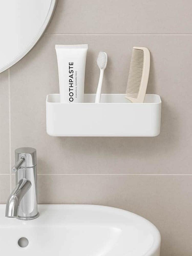 اجعل مساحة مغسلتك أكثر ترتيبًا باستخدام منظم الفرش والمعجون اللاصق، وابحث عن المزيد من الحلول الذكية في منظمات وترتيب الحمام.