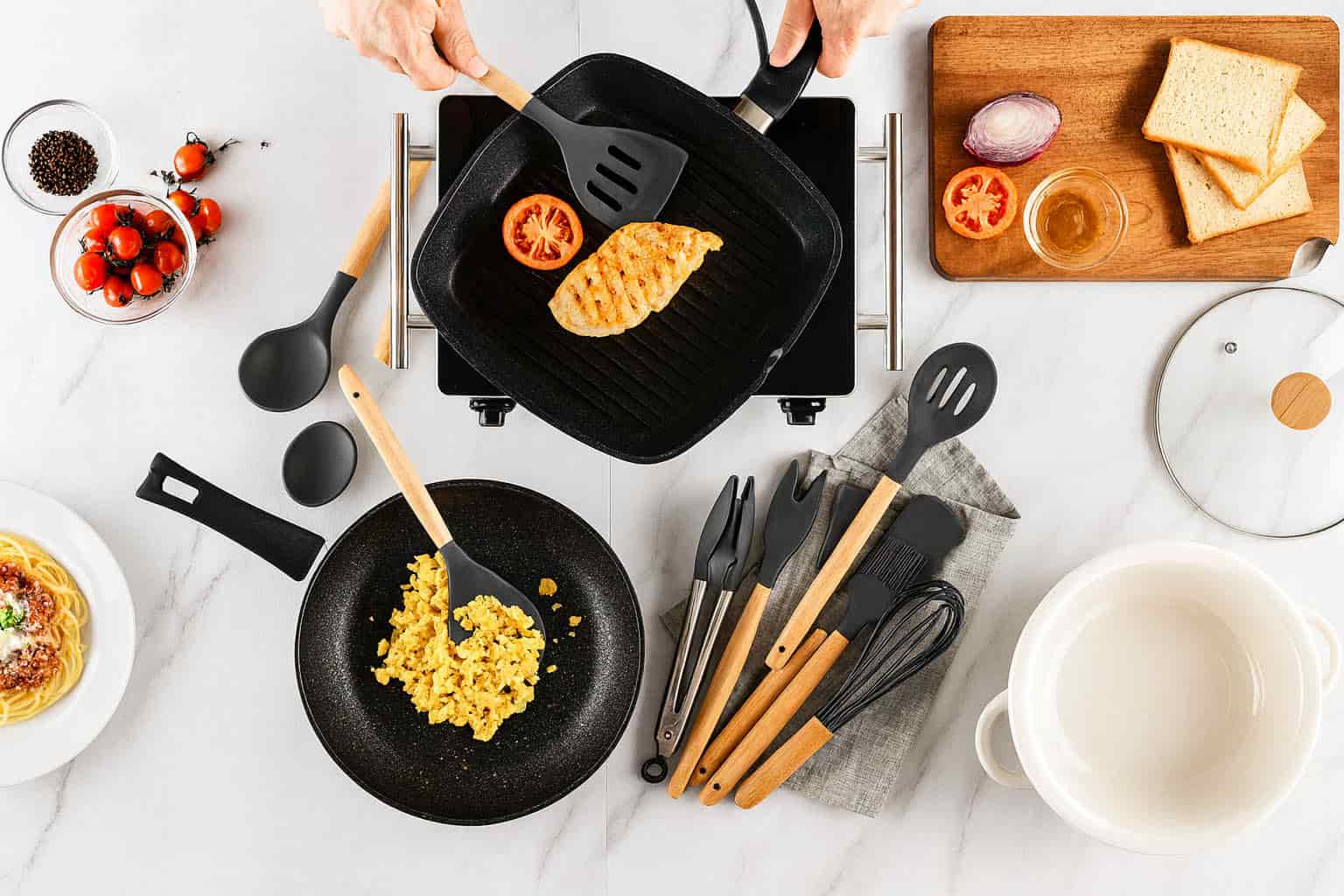 - الأحجام والأشكال: تشكيلة مخصصة للتقليب والخلط والكشط والتقديم