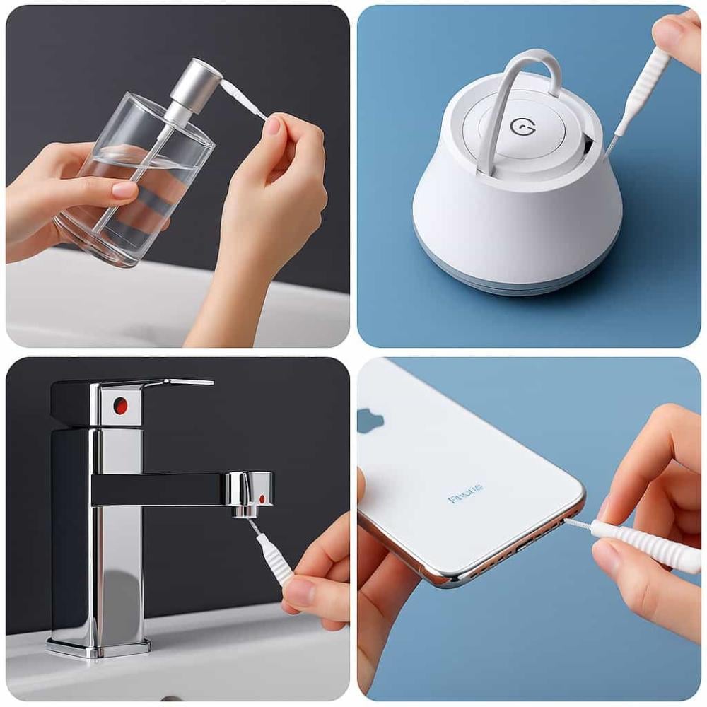 2. ادخال فرشاة تنظيف فتحات الدش ومنافذ الجوال في المنفذ بطريقة بطيئة