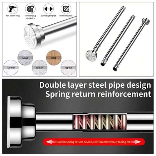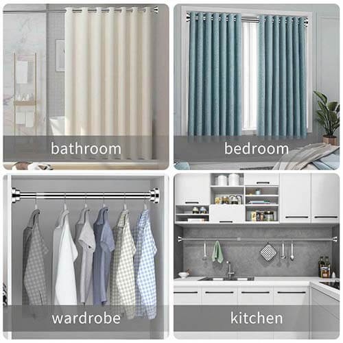 - يستخدم العمود لتثبيت الستائر مثل ستارة الحمام بشكل آمن ومستقر، كما يمكن تثبيتها في ممرات المنزل أو تحت الأقواس.