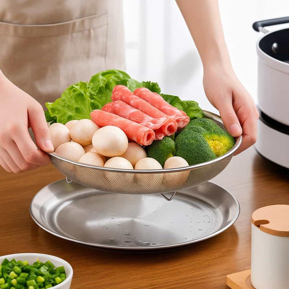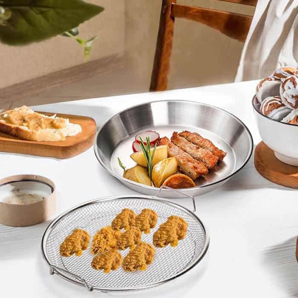 تمنحك شبكة الطهي المصنوعة من الستانلس ستيل حلاً عملياً ومتعدد الاستخدامات لتحضير مختلف الأطعمة بسهولة وكفاءة. بفضل تصميمها الشبكي المتين، تساعد في تصفية الزيوت، تجفيف الفواكه، وتبخير الخضروات دون فقدان قيمتها الغذائية. سواء كنت ترغب في تحضير وجبات صحية أو قلي الأطعمة بطريقة مثالية، ستجد أن مصفاة زيت القلي هذه توفر لك تجربة طهي أكثر راحة وفعالية.