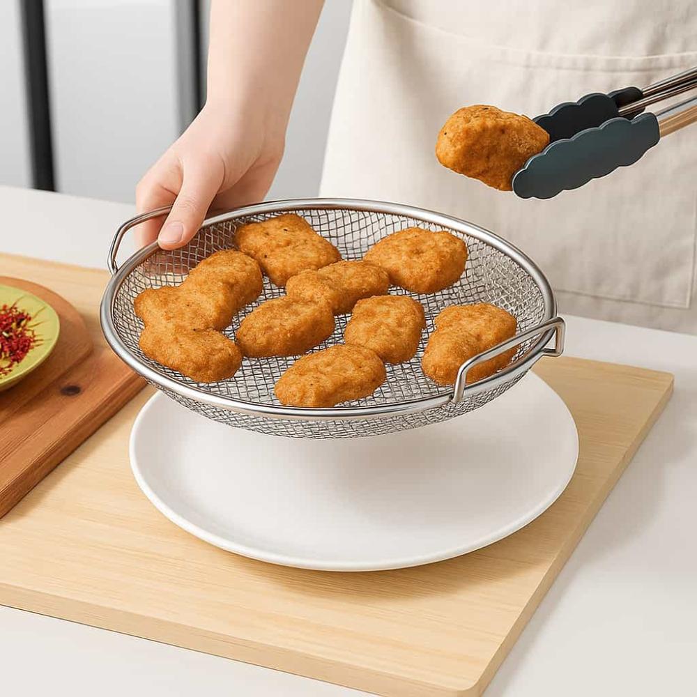 - تصفية الأطعمة المقلية من الزيوت الزائدة