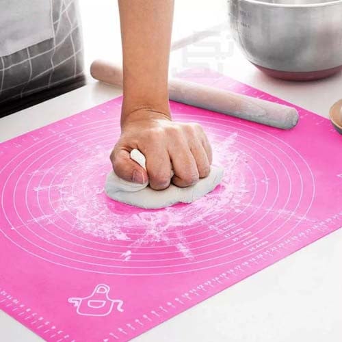 - مفرش عجين سيليكون يستخدم لفرد العجين بشكل متساوي وسهل مما يسهل عملية التشكيل والتمدد.