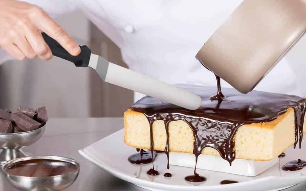 - لتوزيع الشوكولاتة السائلة وزبدة الفول السوداني على الحلويات