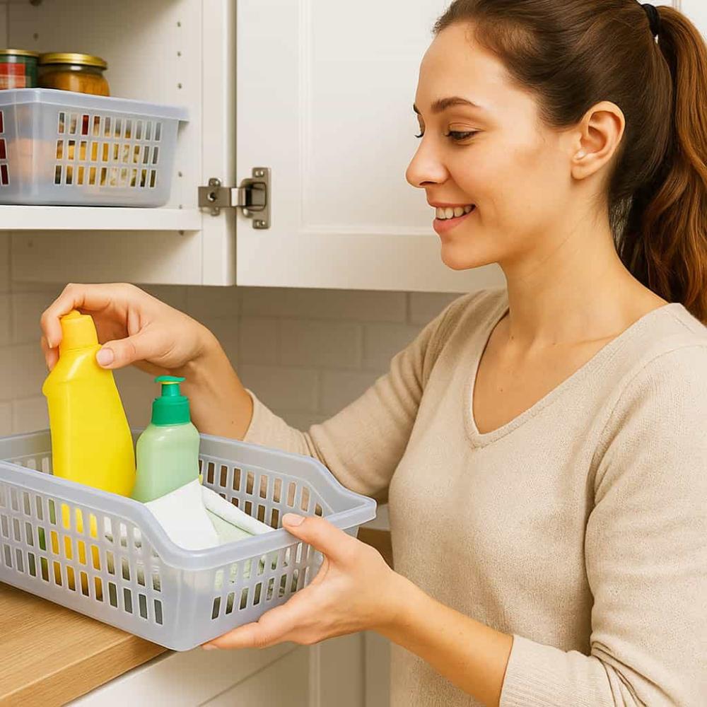 • مقيدة لتنظيم وتخزين مواد وادوات النظافة مثل الصابون السائل واسفنج النظافة وغيرها.