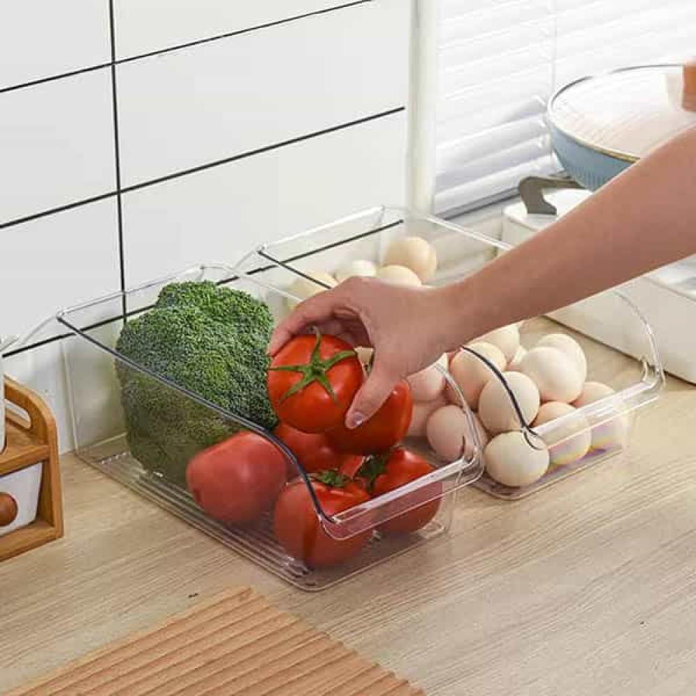 منظم أكريليك شفاف حجم كبير بتصميم أنيق، مثالي لتنظيم الثلاجات أو تخزين المواد الغذائية، يتميز بتصميم عملي يسمح لك بالاحتفاظ بالأطعمة بشكل مرتب ومنظم يوفر لك مساحة كافية لتخزين العبوات أو المكونات المختلفة، مما يساعدك في الحفاظ على نظافة وتنظيم الثلاجة أو خزائن المطبخ.