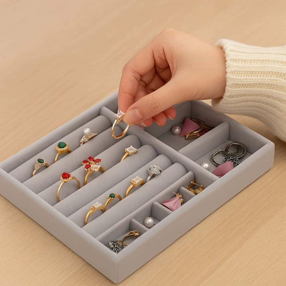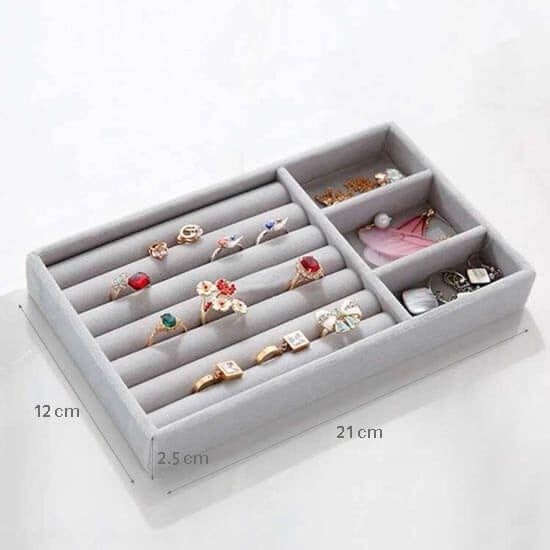 - يوفر منظم الخواتم المخملي تنظيمًا مثاليًا للخواتم والاكسسوارات، مما يجعلها سهلة الوصول وجاهزة للاستخدام في أي وقت.