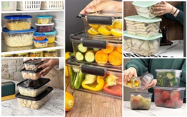 ٤. استخدم منظمات وحافظات طعام بلاستيك شفافة: هذا يسمح لك برؤية محتويات الحافظات بسهولة وعدم الحاجة إلى البحث الطويل عن العناصر.