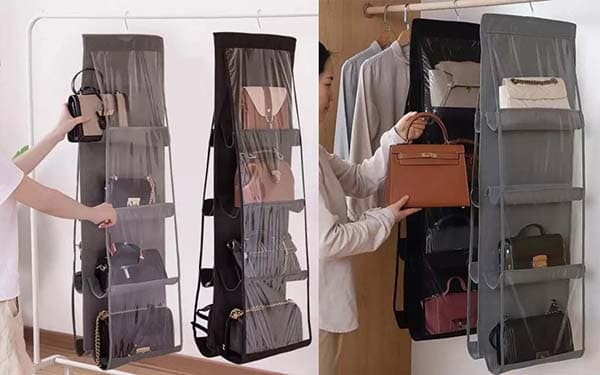 منظم حقائب يدوية | 8 خانات بخطاف تعليق لتنظيم مساحة التخزين داخل الدواليب أو خارجها، فكرة رائعة جداً لترتيب المساحات داخل الدولاب.