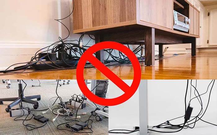 3. اخفي الأسلاك عن الأنظار بتوجيهها خلف المكتب أو استخدام أغطية الأسلاك.