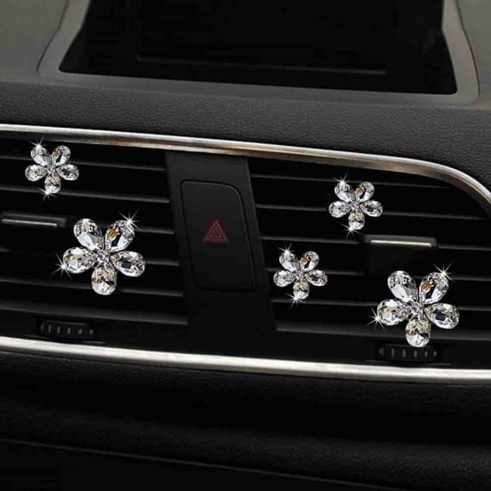 زينة سيارات نسائية تعليقات 5 قطع شكل وردة كريستال مع مشبك تثبيت على فتحات المكيف